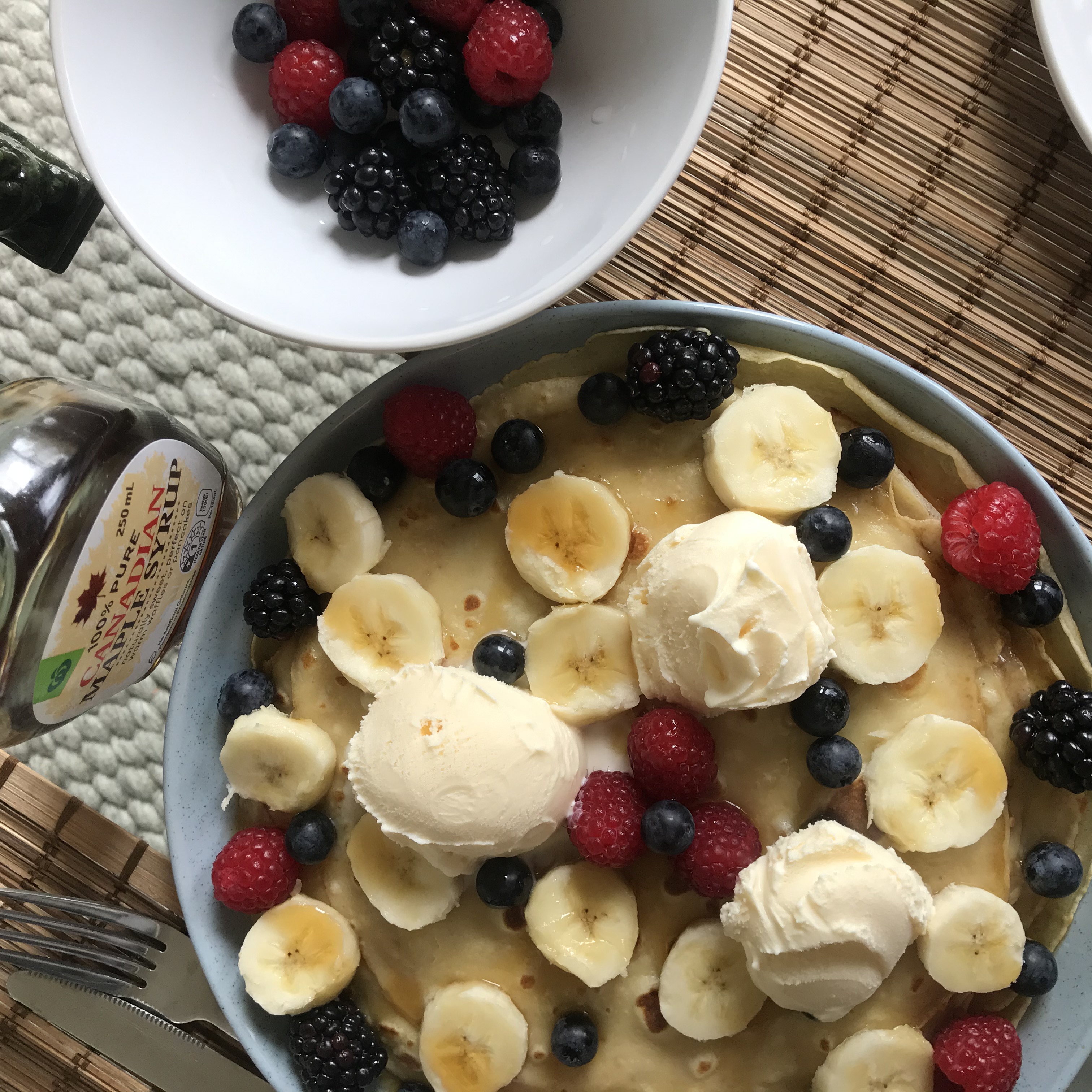 메이플 시럽 / 각종 베리류 / 아이스크림, 생크림 (원하시는 만큼 준비해주세요)